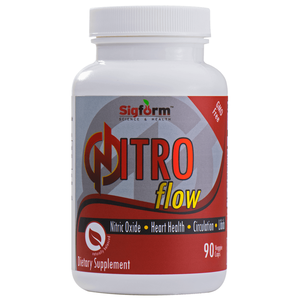 Nitro Flow contains Nitrosigine® a patented complex with unique benefits to boost nitric oxide levels in a remarkable combination of nutrients formulated to promote circulation, energy and well-being.