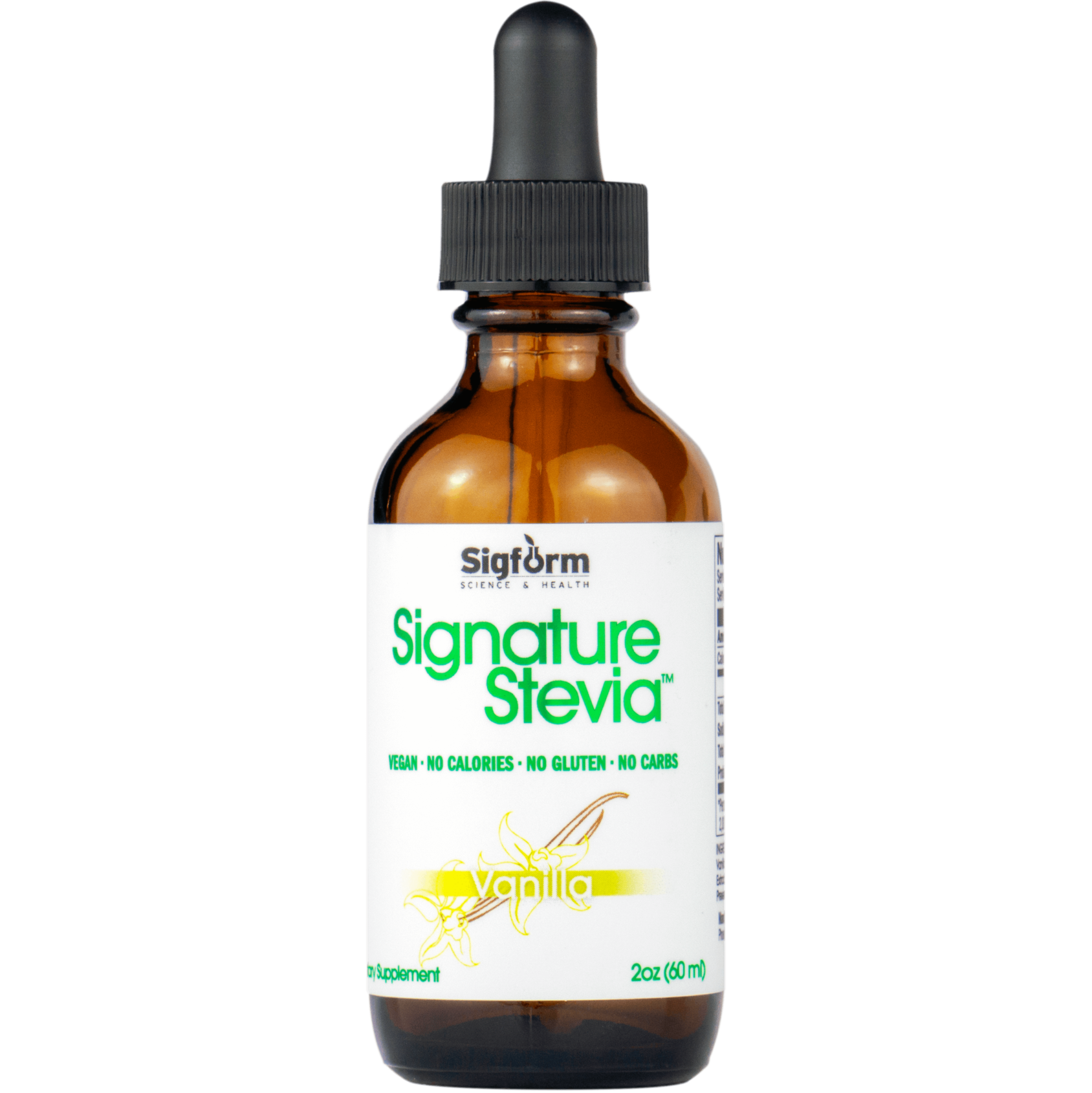 Sigform Signature Stevia is a premium flavored liquid stevia line with ZERO impact on your Glycemic Index. Our stevia is extracted from the leaf, without chemical processing, by steam distillation to ensure no bitter aftertaste.